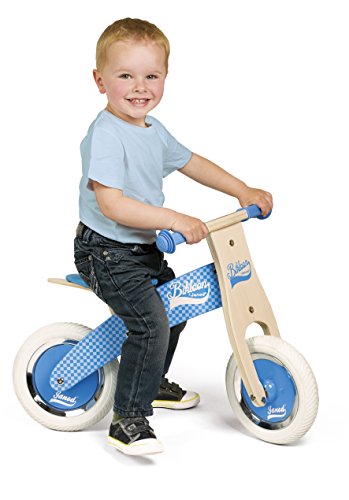 Janod- Little Bikloon La Mia Prima Bicicletta Senza Pedali di Legno, Colore Blu, J03258