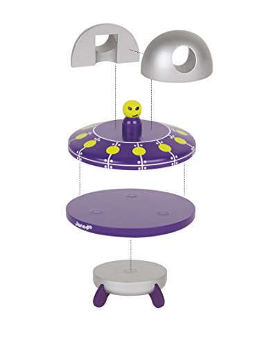 Janod- Kit Magnet UFO Giocattolo in Legno, 5 Pezzi, Multicolore, J05220