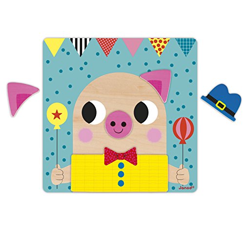 Janod - Magnetic Educational Game - 30 Giant Magnetic Pieces - Develops Fine Motor Skills - From 2 Years Old - Wooden Activity Toy, J08035