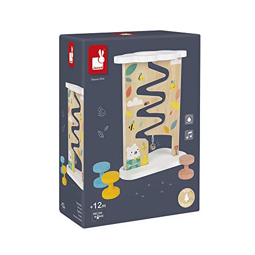 Janod - Pure Percorso in Discesa (Legno), Giocattolo per Apprendimento Precoce, per Sviluppare la Motricità Fine, Pittura Ad Acqua e Legno - Da 1 Anno in su, J05153