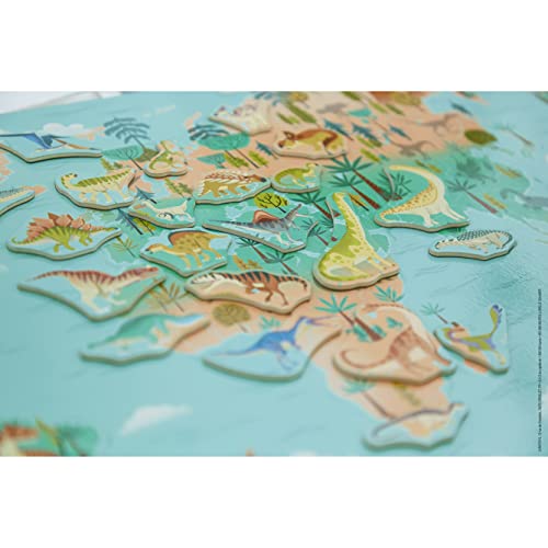 Janod Planisfero Dinosauri-50 Dinosauri Magnetici + 1 Tabellone + 1 Poster Modello-Gioco Educativo per Bambini-dai 7 Anni, J05836, Multicolore