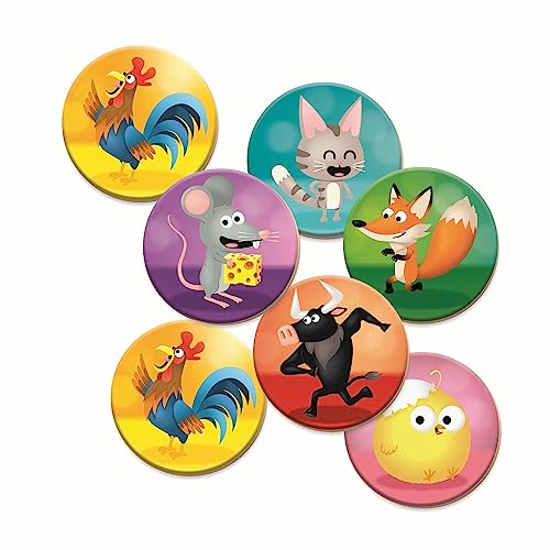 TROVATELI TUTTI: questo gioco di memoria degli animali in cartone è un gioco di osservazione che invita i bambini a girare le carte rotonde a due a due per ricomporre le coppie di animali. Un coniglio e una mucca? Chi riesce a formare il maggior numero di coppie?