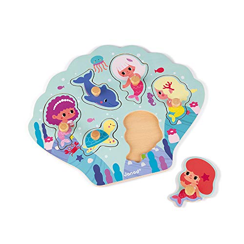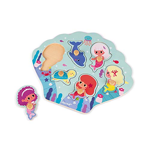 Puzzle da 6 pezzi con pomelli in legno sul tema delle sirene.