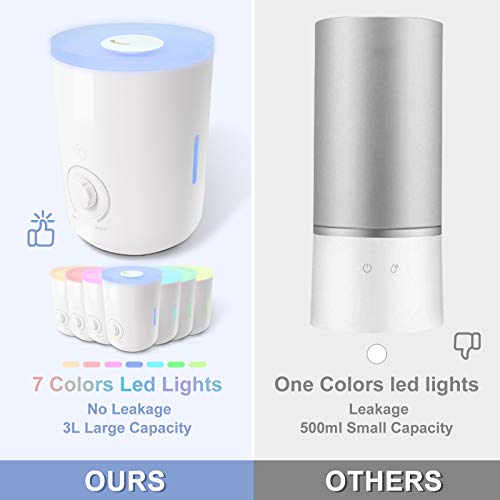 Janolia Umidificatore Ultrasuoni 3L, Diffusore di Olio Essenziale con 7 luci LED per casa, Camera da Letto, Baby Room, Yoga, Ufficio, Spa Blu