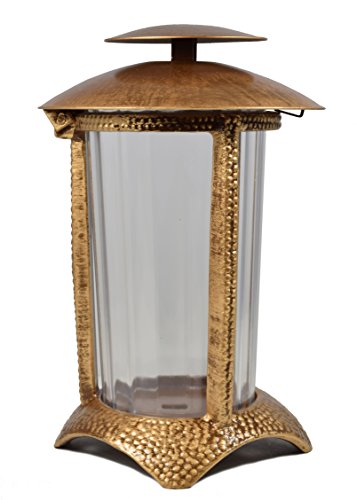 Lanterna tombale rotondo colore marrone/oro con inserto in plastica e lamiera coperchio