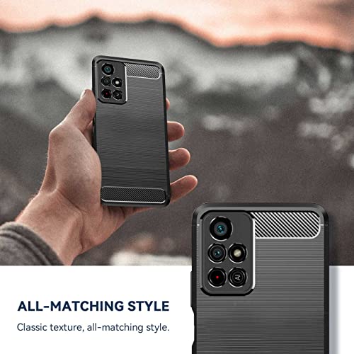 JANYO Cover Compatibile con Xiaomi Redmi Note 11 5G / Xiaomi Poco M4 Pro 5G + 2 Pezzi Pellicola Vetro Temperato, Morbido TPU Silicone Protettiva Case Carbon Fiber Look Custodia Protettiva, Nero