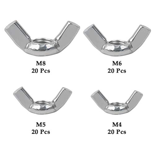 JAOMON 80 Pezzi Dadi ad Alette M4, M5, M6, M8 Dadi ad Alette Set di Dadi Zincati Kit Assortimento di Dadi a Farfalla per Accessori per Mobili Industriali Fai-da-Te