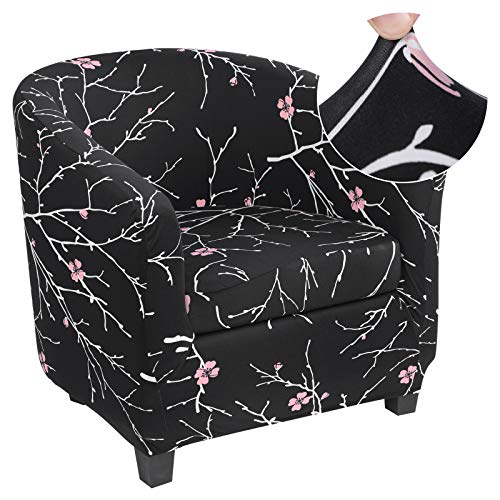 Jaotto Copripoltrona 1 Posto Elasticizzato,Fodere Copripoltrona Universale con Cuscino Separato,Copripoltrona Chesterfield Lavabile Antiscivolo per Bancone Soggiorno Tullsta,Fiore Nero