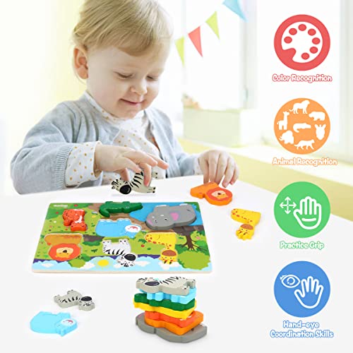 Japace Puzzle bambini 1 Anno e 2 3 Anni, Puzzle Animali 3D con Cornice, Giocattoli Educativi Risveglio Montessori Regalo di Compleanno per Bambini