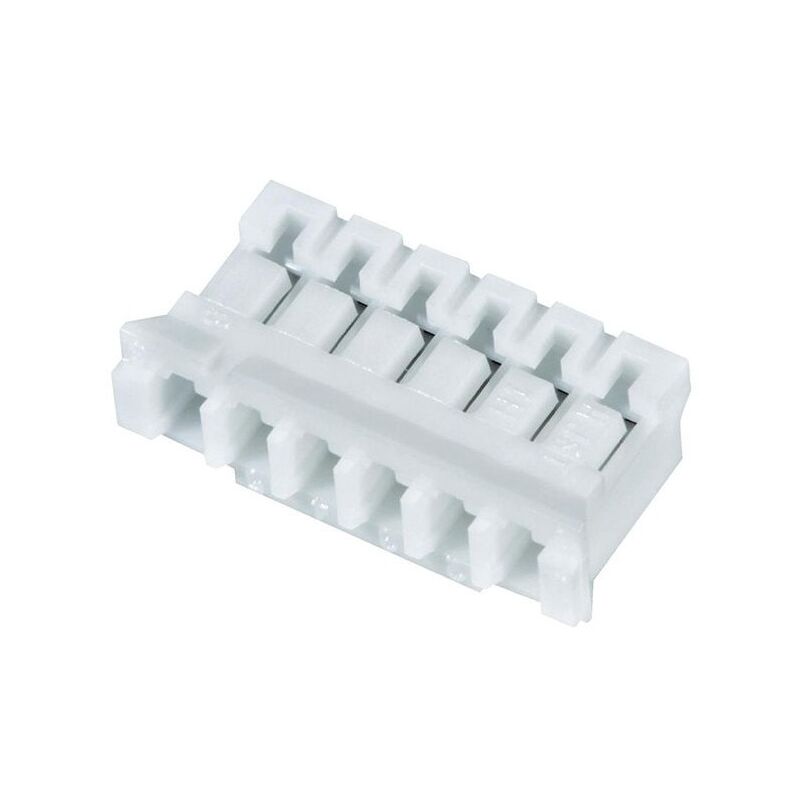 Codice ErreBi: 14858 Codice produttore: PHR-6 Produttore: Japan Solderless Terminals Prezzo per 50 pezzi Note: Quantità 1 corrisponde a 50 pezzi Esempio: Se acquisti quantità 3, riceverai 150 pezzi Product Range: JST - PH Series Contact Termination Type: Crimp Gender: Receptacle No. of Contacts: 6 No. of Rows: 1 Pitch Spacing: 2mm Contact Plating: Tin Contact Material: Phosphor Bronze SVHC: No SVHC (16-Dec-2013) Colour: White Contact Resistance Max: 10mohm Contact Termination: Crimp Current rating: 2A Flammability rating: UL94V-0 Insulation Resistance: 1000Mohm Material: Nylon 6.6 Operating Temperature Max: 85°C Operating Temperature Min: -25°C Working Voltage: 100V Scheda Tecnica Tipologia di prodotto: Corpo del connettore Serie: PH Amperaggio: 2A Materiale: PA (Poliammide, Nylon) Colore: Bianco Temperatura operativa: -25°C a +85°C Dimensione: 6,40x13,80x4,50 (L x W x H) Infiammabilità: 94V-0 Voltaggio: 100V Montaggio: Sul cavo Genere: Femmina Numero di poli: 6 Numero di file: 1
