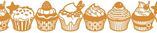 PLUS Japan Timbro a rullo decorativo modello senza interruzioni cupcake, arancio, circa 50 m, per cartoline di auguri, decorazione di feste