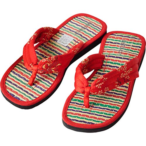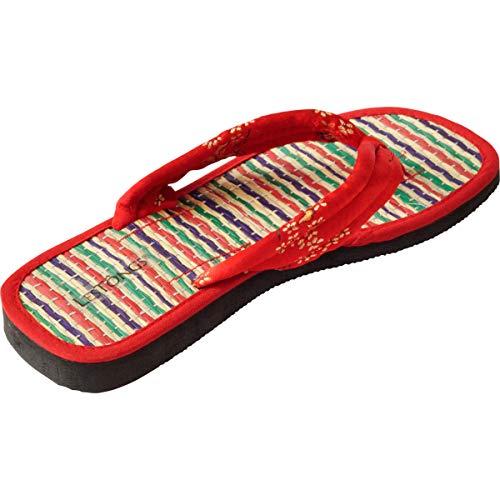 Japanwelt Ciabattine alla cannella I Les Tongs JUNCUS-S Beach Verde e Rosso, sandali aperti alla cannella giapponese, infradito infradito infradito vegane e sane, suola in cannella per uomo e donna