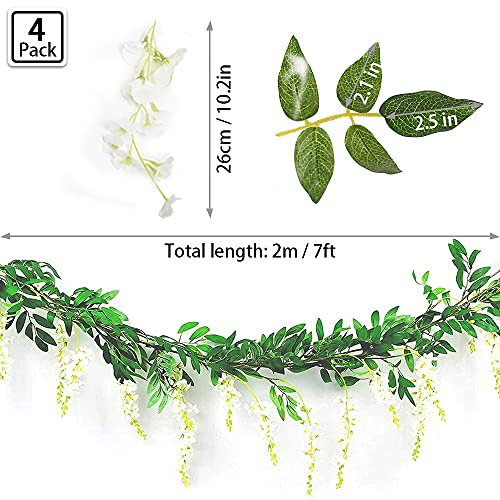 Jaragar Ghirlanda di fiori, 4 fiori artificiali di glicine da appendere a vite piante rampicanti da parete per esterni, giardino, casa, soggiorno, decorazioni per matrimoni