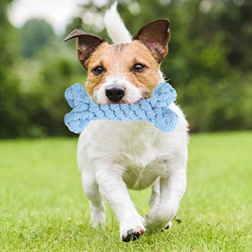 Jarchii cane corda di cotone giocattolo, rosso blu coniglio animale domestico giocattolo, mordere cane masticare cucciolo per animali (ossa blu)