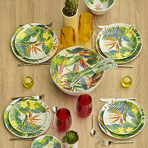 Questa insalatiera grande in melamina cava si abbinerà perfettamente con il set di coperti da insalata della stessa collezione. Nella collezione Fiori Esotici troverai: piatti grandi e piccoli, insalatieri grandi e profundi, piatti da portata tondo, lungo e ottagonale, vassoio e posate per ensalata.