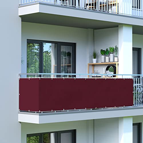 Jarolift Copertura per Balcone Impermeabile, Telo di Rivestimento e Protezione per Balcone, 300 x 90 cm, (16 Occhielli), Rosso Vinaccia