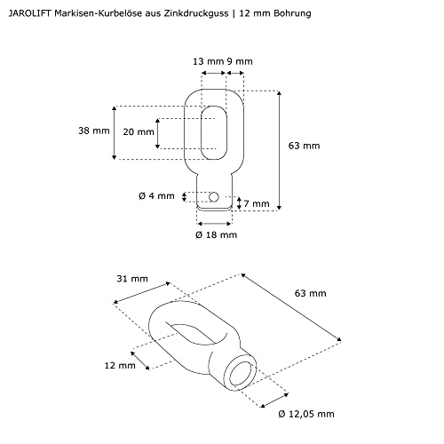 Jarolift Occhiello per Manovella per Tende da Sole, in Pressogetto di Zinco, Ovale, Foro 12 mm