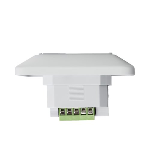 L'interruttore da parete è dotato di 6 eleganti tasti frontali e di un display monocromatico di facile lettura. Le dimensioni del modulo dell'orologio sono di 50 x 50 mm, con cornice esterna 80 x 80 mm