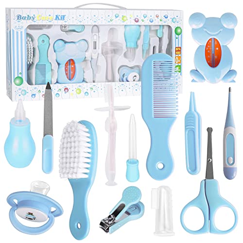 【Upgraned 13 Piece Set】- Our baby grooming kit are made of durable high quality no-rust stainless steel and BPA-Free plastic. The set includes baby special comb and brush, baby special clippers and scissors, baby special nasal aspirator, baby finger toothbrush, nail file and so on.