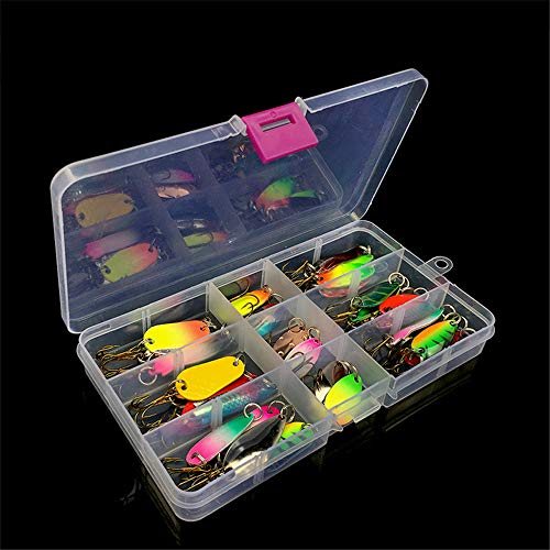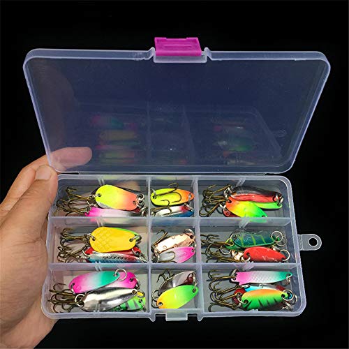 【Scatola di Imballaggio Portatile e Full Size Esche】 La scatola trasparente che è divisa in molte piccole griglie, ti aiuta a trovare la tua attrezzatura da pesca a colpo d'occhio, include 31 pezzi di esche da pesca di diverse dimensioni, può incontrarti per catturare pesci diversi.