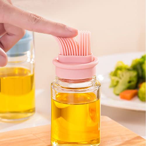 JasCherry 2 Pezzi 150 ml Bottiglia di Olio con Pennello in Silicone, Pennello in Silicone da Pasticceria, Pennello per Barbecue in Silicone Morbido per Cuocere Barbecue Arrostire Grigliare
