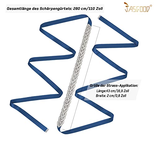 JasGood Cintura da sposa strass da sposa fatta a mano argento cristallo strass abito da sposa cintura cintura da sposa per abiti da sposa, 2-blu mare, Gesamtlänge:43cm(Strass)+255cm(Schleife)