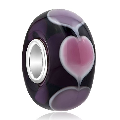 Sug Jasmin Charm in argento Sterling 925 con cuori in vetro di Murano, per bracciali e Argento, colore: Purple, cod. SJC_GB_TJYSSS19_X02