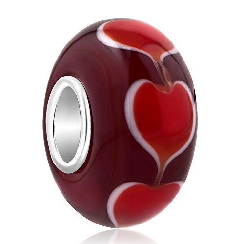 Sug Jasmin Charm in argento Sterling 925 con cuori in vetro di Murano, per bracciali e Argento, colore: Red, cod. SJC_GB_TJYSSS19_X01