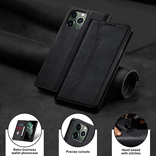 Jasonyu Cover per iPhone 11 Pro Flip Custodia in Pelle PU, Cover a Libro Portafoglio, Funzione Supporto, Magnetica, Slot Schede, TPU Bumper Caso Custodia per iPhone 11 Pro (Nero)