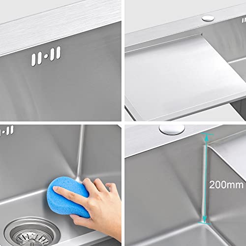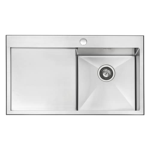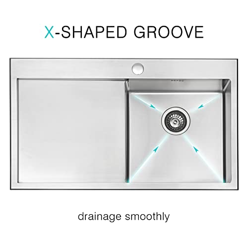 JASSFERRY Lavello da cucina Vasca singola in Acciaio Inox Spazzolato, scolapiatti a sinistro Lavandino, con set di rifiuti
