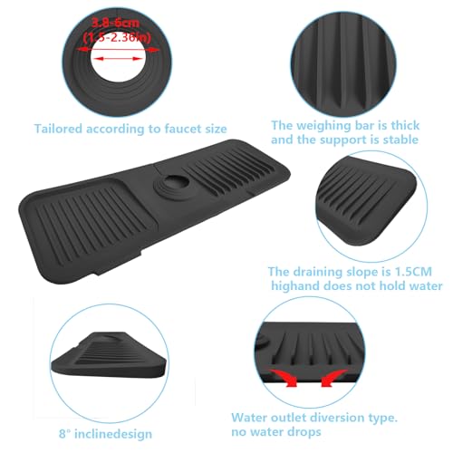 Jastown Tappetino per Rubinetto paraspruzzi lavello Cucina,Tappetino per Rubinetto lavello Cucina,Tappetino di drenaggio in Silicone,Tappetino di Scarico per rubinetti,Faucet draining Mat (Nero)