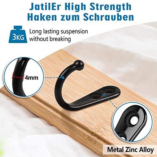 Gancio ad alta resistenza per viti: il gancio appendiabiti Jatiler nero è realizzato in lega di zinco di alta qualità con una portata massima fino a 3 kg per una sospensione durevole senza rottura.