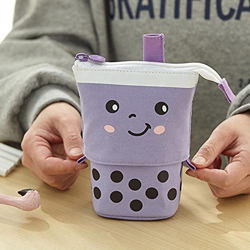 JAWSEU Astuccio Telescopico Bubble Tea, Tela Telescopica Astuccio Multifunzionale Lattine per Matite Porta Trucco Astuccio Cartoleria Organizer per Studente Adulto Adolescente E Ufficio (Viola)
