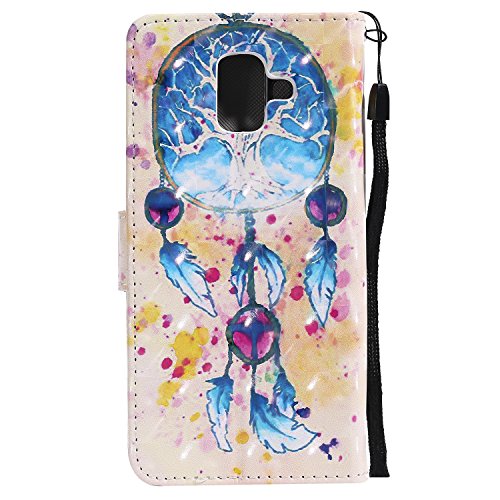 JAWSEU Custodia Cover Galaxy A6 2018 Portafoglio Pelle, 3D Lusso Creativo Colorato Modello Ultra Sottile Leather Pu Cuoio Flip Wallet Case Cover Copertura Supporto Magnetica,Campanelli eolici
