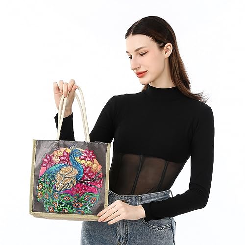 JAWSEU Fai da te Diamond Painting Utile Borsa a Mano, Kit di Pittura Diamante Tote Strass Pittura Tela Pieghevole Borsa Alla Moda Donna Borsa della spesa per Shopping Viaggi Picnic