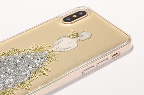 JAWSEU iPhone X Custodia Cover Silicone TPU Trasparente, 3D Floreale Vestito Ragazza Sparkle Glitter Scintillare Scintillio Bling Morbido Gel Ultra Sottile Crystal Chiaro Protettiva Case