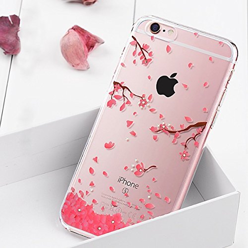JAWSEU iPhone 6 Plus/6S Plus Cover Custodia Silicone Trasparente Rosa Fiori di Ciliegio, Cristallo Chiaro Diamante Bling Glitter Ultra Sottile Soft Gel Flessibile TPU Protettiva Bumper Case