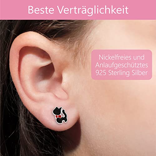 JAYARE Orecchini da bambina a forma di gattino, in argento Sterling 925, 10 x 7 mm, per bambine