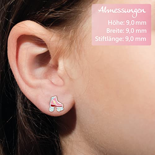 JAYARE, orecchini per bambine a forma di pattini, in argento Sterling 925, 9 mm, di colore rosa e blu