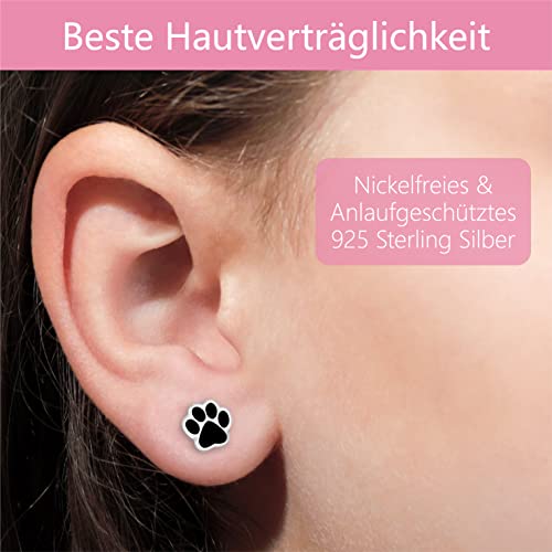 JAYARE Orecchini a forma di zampa in argento Sterling 925, per bambine e ragazze e Argento, colore: Nero, cod. EYS-991846