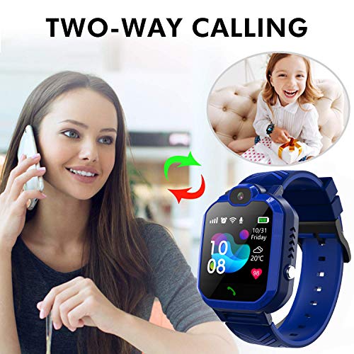 Jaybest Smartwatch Bambini, IP67 Impermeabile LBS Tracker Smartwatch Bambini Telefono Cellulare Touch Screen a Chiamata Bidirezionale Anti-perso Gifts, Scheda SIM SOS con Fotocamera, Giochi (blu)