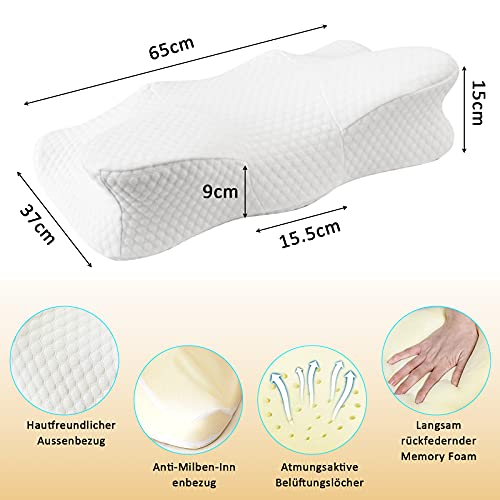 Design ergonomico - I cuscini ortopedici a forma di farfalla sono personalizzati per chi dorme sul fianco/supino/a pancia in giù. Quando dormi supino, il supporto per il collo e la testa può ridurre la pressione sul cranio posteriore. Quando si dorme sul fianco, si prega di dormire sul lato dell'ala, assicurarsi che l'incisione sotto l'ala si adatti alle curve della spalla, rilasciare la pressione della spalla, e mettere il braccio sui braccioli per ridurre l'intorpidimento