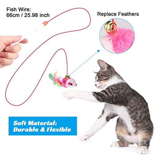 Jayol Giocattolo interattivo per gatti con piume, teaser con 10 molle di ricambio per pesca con campana, giocattolo per gatti indoor, movimento di inseguimento del gattino.