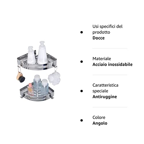 Jaysamay 2 Pezzi Mensole Bagno Senza Foratura, 304 Acciaio Inox Stoccaggio Portaoggetti da Bagno per Doccia e Shampoo Antiruggine (Angolo)