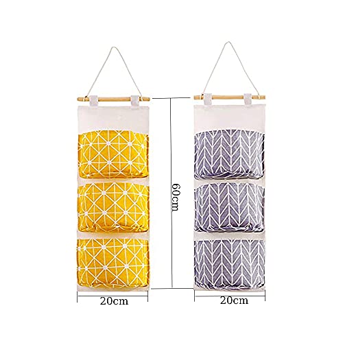 Jbanton 2 Pcs Portaoggetti da Appendere, Organizer Armadio Interno, Organizer da Appendere, Con 3 Tasche Adatte per Camera da Letto, Bagno, Cucina (Giallo, Grigio), 60x20cm