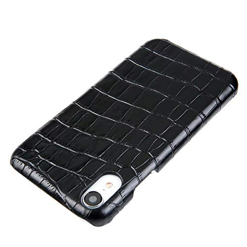 JDDRCASE Mobile Telefono Custodie Cover, Custodia iPhone XR, Custodia Antiurto Protettiva Modello Coccodrillo di Lusso Custodia in Pelle Genuina per iPhone XR (6,1 Pollici) (Colore: Nero)