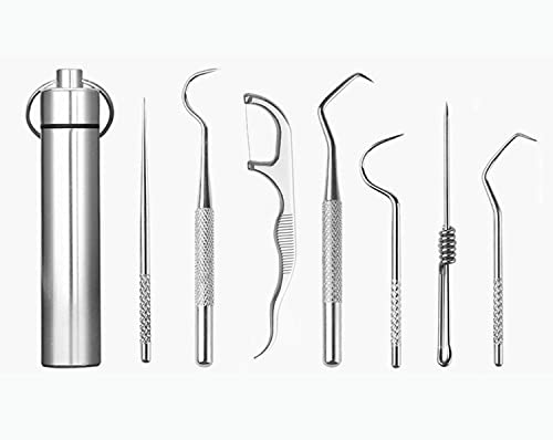 JDGMEI 8 Pcs Portable Keychain Toothpick,Riutilizzabili Raschietto Per Stuzzicadenti da Viaggio Stuzzicadenti in Acciaio Inossidabile Detergente per Denti in Metallo,per Picnic