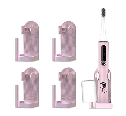 JDKAI Portaspazzolino Elettrico da Muro,4 Portaspazzolini, Portaspazzolino Regolabile Senza Foratura per il Bagno, rosa