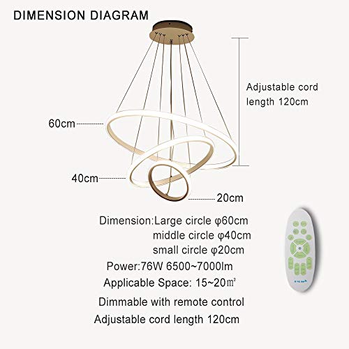 4. Dimensioni: cerchio grande 60cm, cerchio centrale 40cm, cerchio piccolo 20cm e l'altezza della linea di sospensione della lampada a sospensione è 120cm.