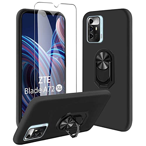JDXHFF Cover Compatibile con ZTE Blade A72 5G (6.52") Nero e Staffa Girevole a 360° e Pellicola Protettiva in Vetro Temperato - Custodia Morbido Silicone Protettivo TPU Case Black